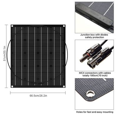 Nama produk | panel surya serat hitam 50w permukaan hewan peliharaan panel surya fleksibel untuk loteng kipas apung float tiang di kapal pesiar RV berkemah perjalanan off road |